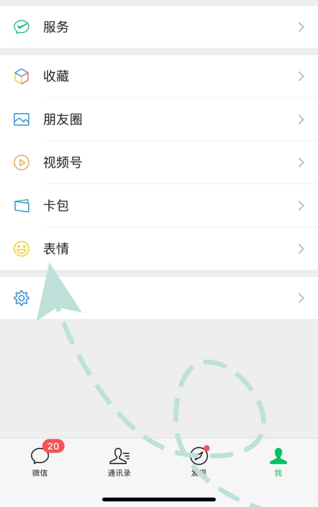 打開(kāi)微信點(diǎn)擊“我”點(diǎn)擊“表情”選項(xiàng)